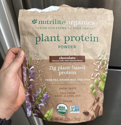 Ingredients: d - FROM OUR FARMS TO YOUR FAMILY™ Organic starts on the farm. that way long before it was the thing to do, harvesting nutrient-rich crops like the organic chia For us, that means on our nearly 6,000 acres of certified organic farmland. Land we've tended in this plant-based protein. Grown cleanly. Picked freshly. Then lightly sweetened and naturally flavored for a rich and creamy chocolate taste. We know that when we nurture these things, and your family's day. a simple way to power you with you. we're bringing to life something bigger - Because organic may start on the farm, but it ends "We are not merely on the earth. We are of the earth." - Carl F. Rehnborg, Nutrilite Founder EARTH'S Calories per serving BEST NUTRIENTS Nutrition Facts 15 servings per container Serving Size 39.5 g Total Fat 5g PLANT BASED Saturated Fat 2.5g Trans Fat Og - ved by 30043V. Ce Organic by GCIAOCP, Athens, GA 30605. STORE AT ROOM TEMPERATURE AWAY FROM SOURCES OF HEAT. SUGGESTED USE: Mix 2 scoops in 12-14 oz. of your favorite milk, water or other liquid and shake well in a shaker cup or use blender. NO ARTIFICIAL COLORS, FLAVORS, OR SWEETENERS. FREE FROM DAIRY, GLUTEN, AND SOY. Amount/serving % Daily Value* Amount/serving % Daily Value* 6% 13% 10 ORGANIC 0% 15% FARMING ● Total Carbohydrate 4g Dietary Fiber 3g Total Sugars Og Includes Og Added Sugars ● Cholesterol 0mg Sodium 355mg Protein 21g Vitamin D Omcg 0% Calcium 50mg 4% Iron 6.5mg 36% Potassium 136mg 3% Phosphorous ● 22mg 2% • Magnesium 15mg 4% Zinc 1.3mg 12% Selenium 14mcg 25% Chloride 145mg 6% ● ONIMOYO ● B WITH YOU AND FOR YOU 145 NGREDIENTS: Organic Protein Blend (Organic Pea Protein, Organic Rice Protein, Organic Chia Seed Protein), Organic Dutched Cocoa, Organ Care end (Organic Coconut Oil, Organic Rice Syrup Solids, Organic Pea Protein, Sodium Citrate, Organic Sunflower Lecithin, Tricalcium Phosphate) Organi eviol Glycosides (Reb-A), Organic Natural Flavors, Sea Salt, Xanthan Gum, and Organic Monk Fruit Extract. CONTAINS COCONUT. by Amway Corp., Ada, MI 49355. Amway.com Questions: 1-800-253-6500. Alticor Inc. A2100699 2131RX11 E EXP 11/ 2023 15:07 1% 11% 0% 36% The % Daily Value (DV) tells you how much a nutrient in a serving of food contributes to daily diet 2.000 calories a day is use for general nutrition advice 143 Exclusively from Amw