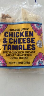 CHICKEN & CHEESE TAMALES WITH CHICKEN BREAST MEAT WRAPPED IN CORN HUSKS