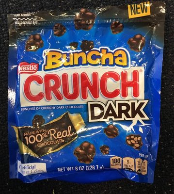 Ingredients: Dark chocolate (sugar, chocolate, cocoa butter, milkfat, soy lecithin, nonfat milk, natural flavor, lactose), crisped rice (rice flour, sugar, salt, barley malt extract), tapioca dextrin, confectioner's glaze (lac-resin).