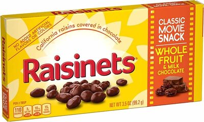 Ingredients: Milk chocolate (sugar, chocolate, cocoa butter, nonfat milk, milkfat, lactose, soy lecithin, natural flavor), raisins, sugar, tapioca dextrin, confectioner's glaze (lac-resin), cocoa processed with alkali.
