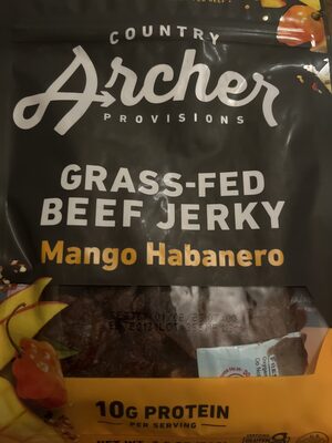 Ingredients: Grass-Fed Beef, Organic Brown Sugar (Organic Sugar, Organic Molasses). Mango Puree, Gluten Free Tamari Soy Sauce (Water, Soybeans, Salt, May Also Contain Alcohol and Sugar), Organic Seasoned Rice Vinegar Dressing (Organic Rice Vinegar, Organic Sugar, Water, Salt), Garlic Powder, Red Chili Pepper, Habanero Chili Pepper. Contains: Soy.