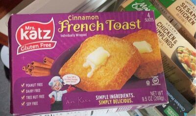 Ingredients: Gluten free flour (tapioca starch, white rice flour, steamed chickpea flour, corn starch, flaxseed meal), water, eggs, palm oil, canola oil, sugar, honey, brown sugar, xanthan gum, salt, dry yeast, cinnamon, apple cider vinegar, natural flavor, nutmeg.